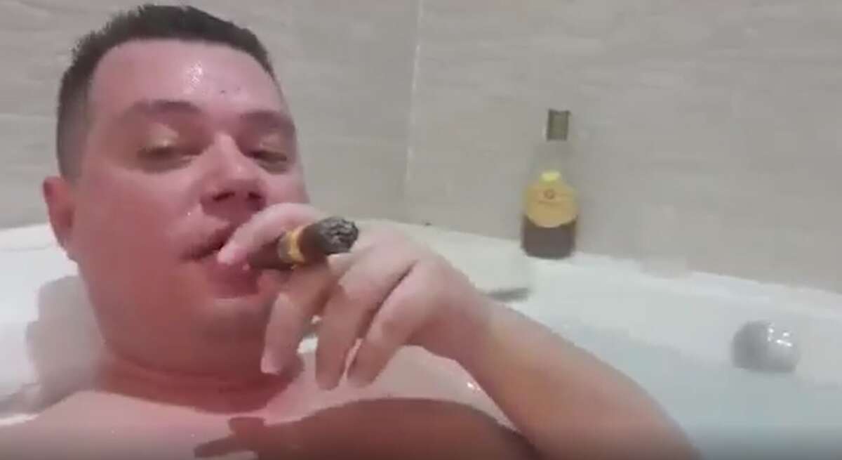 Nudo, immerso nella vasca idromassaggio dell’albergo, un bicchiere di whisky in una mano, nell’altra un sigaro saluta gli amici del “gruppo revenge porn”. Alfio Baffa, candidato alle elezioni regionali in Calabria con la Lega, compare su Facebook in un video social nudo e in atteggiamenti che sembrano simulare una delle scene di Scarface. “Un po’ di relax dopo essere stato, assicura, alla manifestazione del Capitano leghista a Roma, a piazza San Giovanni”, rassicura.