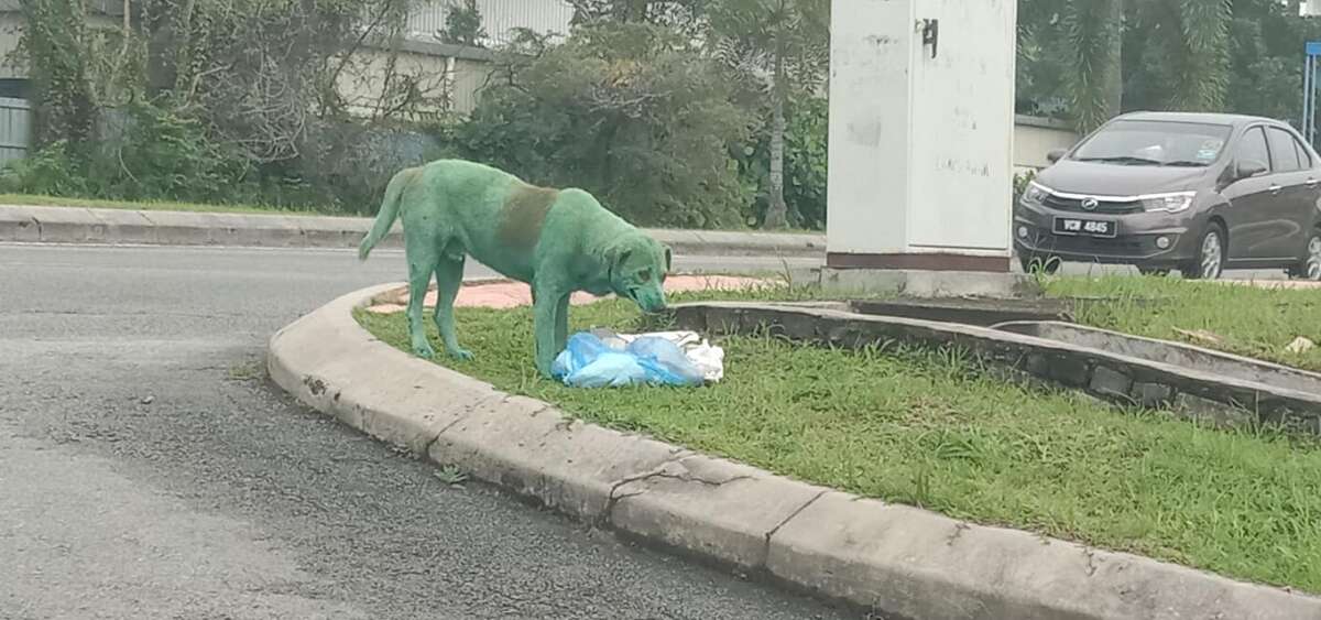 Ricoperto di vernice verde, sostanza che ha anche ingerito e di cui è rimasto intossicato. È il gesto barbaro attuato nei confronti di un cane, segnalato e fotografato nei giardini di un quartiere residenziale di Petaling Jaya, in Malesia. Immagini che hanno fatto il giro del web dopo esser state condivise su Facebook da Shazreen Othuman, un ragazzo che vive nella zona e che ha rivolto un appello online per aiutare il cane, trovato a piagnucolare a bordo strada.