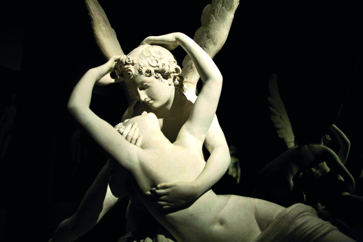 Ciò si esprime innanzi tutto nel suo legame col Neoclassicismo. Il principio fondamentale di questo movimento è forse quello enunciato dal suo massimo teorico, J. J. Winckelmann, nella Storia dell’Arte presso gli antichi: «La bellezza è come l’acqua, tanto più buona quanto meno ha sapore». Vediamo applicato questo principio, ad esempio, nelle opere di Bertel Thorvaldsen, di cui in mostra troviamo il gesso del “Busto del Cardinale Ercole Consalvi”. In linea con il dettato winckelmanniano, le figure di Thorvaldsen si astengono dal mostrare «lo stato dell’animo e il sentimento delle passioni», rifuggono l’emotività. Nel loro caso non è improprio parlare di freddezza: il fascino ieratico che le contraddistingue deriva dalla loro frontalità, dall’indeterminatezza degli sguardi, dai panneggi nitidi e affilati. Sempre secondo Winckelmann il bello ideale deriva «dalla scelta delle più belle parti e dalla loro armonica unione in una figura», e non dal dialogo con un modello reale già esistente in natura, riletto dall’immaginazione dell’artista. Canova si pone agli antipodi. Le sue opere migliori non soffocano il carattere individuale, ma lo esaltano, ne mettono in luce l’umanità e la corporeità. La sua statuaria più riuscita rifiuta di ipostatizzare il mondo classico, di portarlo di peso nel presente. I motivi del ricordo e della nostalgia hanno per lui un valore utopico: colgono del passato le possibilità inespresse, inascoltate, invece di celebrarlo in modo dogmatico. È in questo senso che va letta la frase di Stendhal secondo cui Canova non copia i greci ma inventa, come loro, una nuova bellezza. Luigi Coletti si spinse del resto anche oltre: disse che Canova ha poco in comune con il Neoclassicismo, che il suo linguaggio, al di là delle apparenze, guarda altrove. L’esempio forse più eloquente di tutto questo è nell’“Amore e Psiche giacenti”, ricordato in questa rassegna da una copia realizzata grazie a una scansione 3d. La sua struttura è un vero campo di forze: una costruzione chiastica, innumerevoli piani, un intreccio vertiginoso di tensioni e antinomie. I conflitti e le opposizioni echeggiano i tumulti dei due personaggi, strappano il racconto alla sua dimensione arcaica e lo rendono vivo. Quasi tutti i critici credettero di vedere in opere come questa una tenerezza graziosa, una sensualità repressa e contemplativa. E non seppero cogliere il tema più autentico che le accomuna: un erotismo violento, vivido, palpitante. Non è un caso che il Museo Canova di Possagno sia uno dei primi in Italia in cui si verifica la sindrome di Rubens, che predispone i fruitori delle opere ad uno stato libidico.