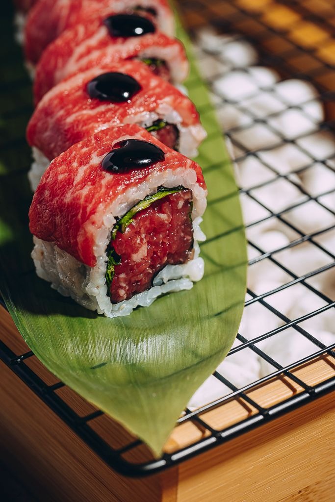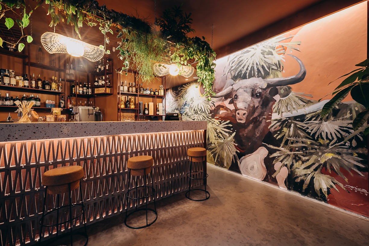 A via Fauro tutto è curato nei dettagli. Una location moderna curata dallo Studio Tamat, 110 metri quadrati su strada, tavolini all’aperto e un toro che svetta all’interno della sala nel quadro fatto a mano da Jerico, giovane artista che ha già esposto le sue opere alla White Noise Gallery di Roma. Il pezzo forte viene dalla cucina, con picanha danese; crocchetta kimchee, ripiena di besciamella aromatizzata alla pasta kimchee con sashimi di australian wagyu e mayo affumicata; tartare carciofi battuta a coltello di scottona nazionale extramarezzata.