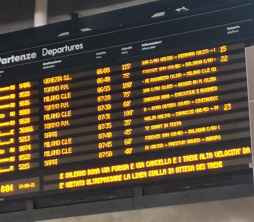 Lunedì da incubo per tanti pendolari. Nella Stazione di Napoli Centrale, sul tabellone luminoso campeggia la scritta: “Guasti elettrici temporanei”. E a seguire il lungo elenco di treni e annessi ritardi che superano anche i 180 minuti. In centinaia aspettano sulla banchina di conoscere il proprio destino. E monta la rabbia soprattutto per il popolo di pendolari che oggi avrebbe dovuto prendere servizio a scuola.