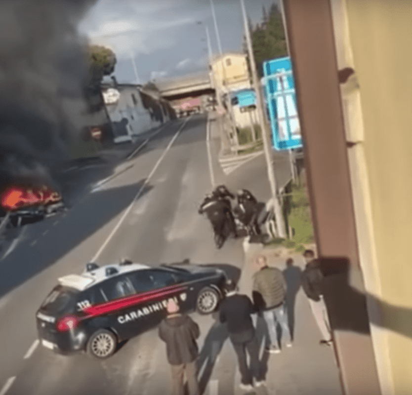 È sabato mattina, a Salerno, quando un malato psichiatrico, già in cura per problemi di aggressività, esce di casa e inizia a guidare una macchina dalla tenuta improbabile: ha le quattro ruote sgonfie. Una pattuglia della polizia stradale gli intima lo stop, inutilmente. Una gazzella dei Carabinieri lo affianca, ma viene speronata. Pochi istanti dopo la macchina, priva dell’aderenza degli pneumatici, perde il controllo e va dritta contro un muro. Si incendia, e si alza una nuvola di fumo denso. Il conducente però ne esce illeso, tanto da ingaggiare subito una colluttazione con i Carabinieri che lo hanno intanto circondato. Poi arriva una seconda macchina dell’Arma.