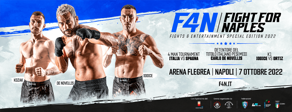 AGGIORNAMENTO – L’evento “F4N – Fight for Naples”, meeting internazionale dedicato alle discipline sportive da combattimento – Boxe, Kickboxing e Muay Thai – si terrà venerdì 7 ottobre a partire dalle 16:00 presso l’HBtoo di Via Coroglio n. 156. Saltato l’incontro che avrebbe visto salire sul ring il campione Italiano dei pesi medi Carlo De Novellis. Saranno Marco de Falco, Daniele Iodice ed Igor Kozak i tre “Top Fighter” che rappresenteranno l’Italia nel corso dell’evento. Tre atleti di profilo internazionale, appartenenti alla Palestra Pro Fighting Napoli Club, pronti a combattere nella duplice sfida Italia vs Spagna e Italia vs Argentina. Marco de Falco e Igor Kozak saranno protagonisti del Torneo Internazionale di K1 Italia vs Spagna, rispettivamente contro gli iberici Marquez e Boukili. Mentre, il napoletano e già Campione Europeo, Daniele Iodice affronterà l’argentino Tomas Ezequiel Ortiz Fernandez, sempre nella disciplina K1.