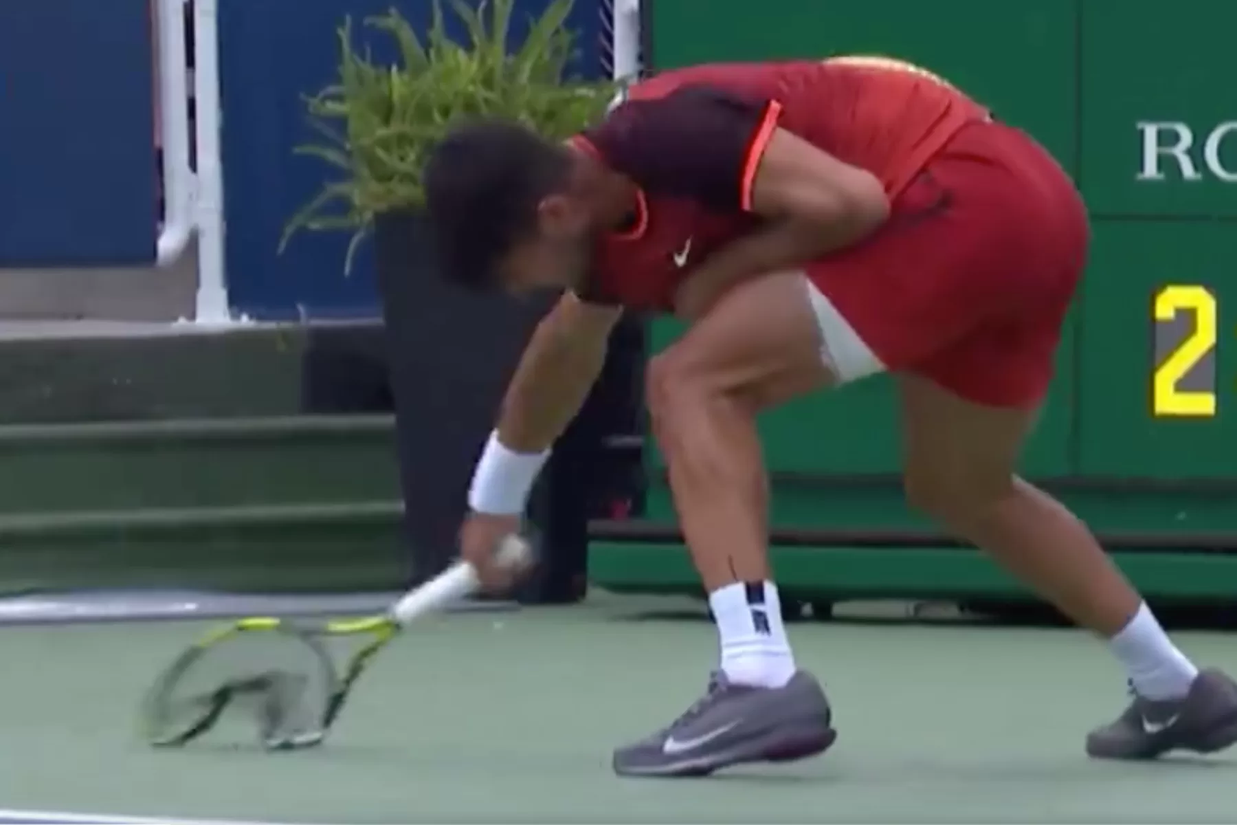 Il numero tre al mondo perde al secondo turno del torneo di Cincinnati (ATP masters 1000) contro il francese Gael Monfils e nel corso del terzo set (la gara è stata interrotta nel secondo set, vinto poi da Monfils, e rinviata di un giorno causa pioggia) reagisce il malo modo dopo aver perso un punto. Alcaraz inizia a scagliare violentemente la racchetta al suolo, fino a distruggerla, tra lo stupore del pubblico.