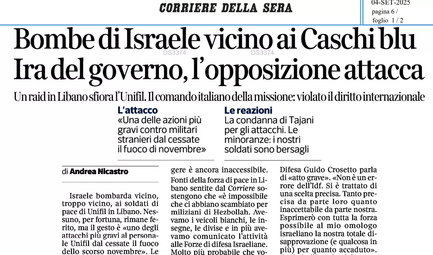 su queste pagine, ieri, ci permettevamo di osservare che sarebbe stata necessaria un po’ di cautela nel denunciare il presunto “attacco” che, l’altro giorno, l’esercito israeliano avrebbe preordinato e attuato contro le forze dell’Unifil. Aggiungevamo che nell’annunciare, come Lei ha fatto, rimostranze nei confronti del governo israeliano, sarebbe stato quanto meno opportuno non affidarsi esclusivamente al comunicato di Unifil e ai lanci di agenzia che ne facevano acritica propalazione.