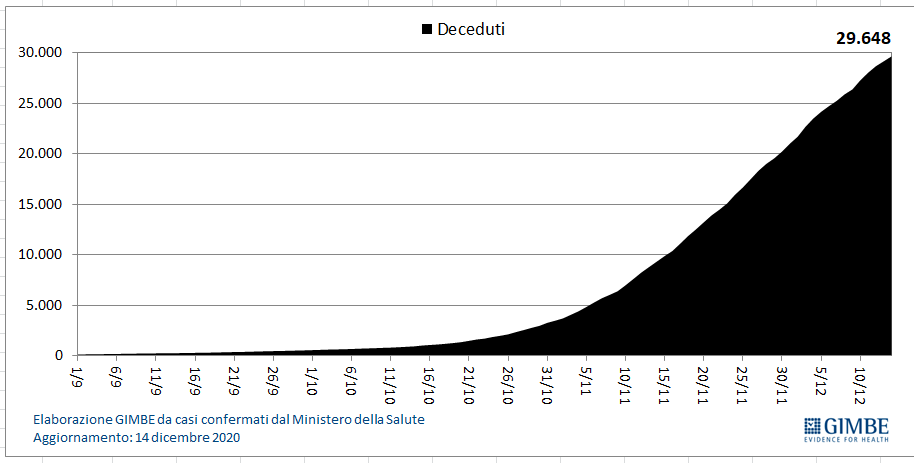Cartabellotta rimarca infatti come “l’ottimismo regna sovrano” e “l’autocritica è inesistente”. Autocritica che invece dovrebbe essere ben presente visto che, come evidenziato in un grafico pubblicato dalla Fondazione Gimbe, in Italia vi sono stati “30 mila decessi dal 1° settembre, di cui 20 mila nell’ultimo mese”.