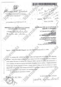 Due sono gli elementi che ci incuriosiscono. Il primo è che l’indirizzo email del Tribunale di Sorveglianza di Sassari è sbagliato; ci auguriamo abbiano rinviato a quello corretto. Secondo: si fa riferimento a una nota della Dda di Napoli del 20 febbraio, la cui esistenza ci è stata confermata da una nostra fonte all’interno della Procura di Napoli. Tutto parte quando il legale di Zagaria a gennaio presenta una istanza di trasferimento per effettuare il trattamento post operatorio. A febbraio il magistrato Maurizio Giordano dava parere positivo al Dap per il trasferimento in altra casa di reclusione che potesse assicurare quelle cure.