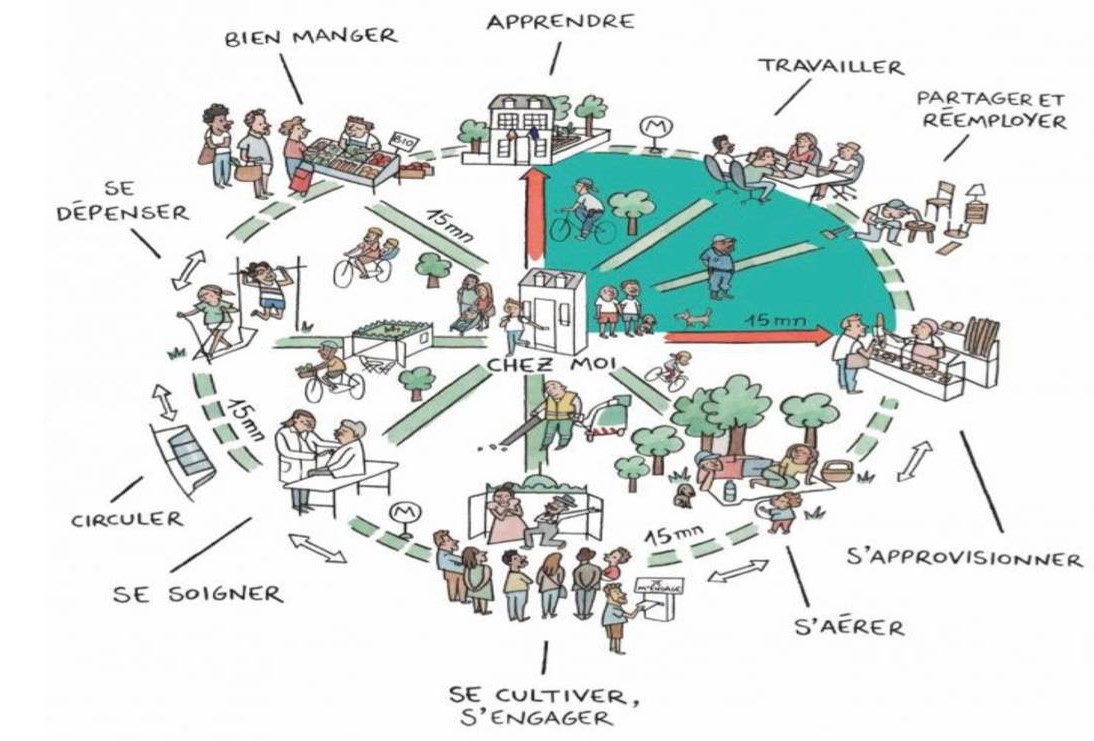 Per esempio è stata citata in campagna elettorale dal sindaco di Milano Giuseppe Sala – uscente e rieletto – e dal nuovo sindaco di Roma ed ex ministro all’Economia Roberto Gualtieri. La “ville du quart d’huere” prevede di riorganizzare gli spazi urbani in modo che il cittadino possa trovare entro 15 minuti a piedi da casa tutto quello di cui ha bisogno: lavoro (anche in co-working), negozi, strutture sanitarie, scuole, impianti sportivi, spazi culturali, bar e ristoranti, luoghi di aggregazione e via dicendo.