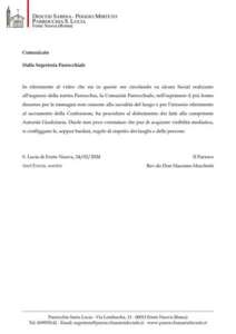 Il comunicato della chiesa su Facebook