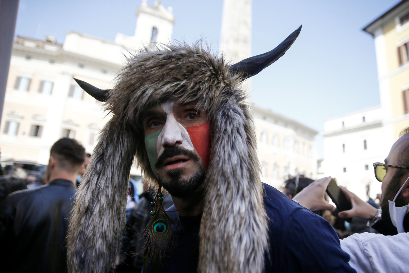 È stato immediatamente ribattezzato il “Jake Angeli” italiano, lo ‘Sciamano’ protagonista dell’assalto del 6 gennaio a Capitol Hill, nel giorno più buio della democrazia americana. Ed Hermes Ferrari, il ristoratore di Modena che questo pomeriggio è sceso in piazza a Montecitorio per protestare contro le chiusure disposte dal governo e soprattutto contro l’assenza di misure di sostegno economico, lo sa bene.