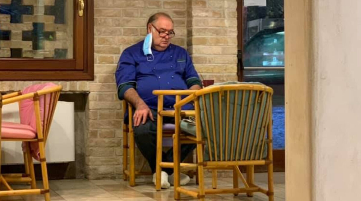 Il suo è un grido di disperazione ma anche di tanto dispiacere nel vedere suo padre seduto con lo sguardo nel vuoto, in attesa di capire cosa ne sarà del destino suo e della sua attività. Seduto all’ingresso del suo ristorante con la sua divisa blu, la mascherina penzolante da un orecchio e lo sguardo fisso nel vuoto, lo scatto è diventato subito virale sui social.