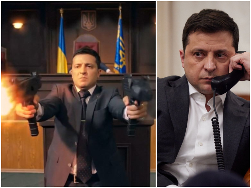 Zelensky è nato il 25 gennaio del 1978 a Kryvyi Rih, città nella Regione di Dnipropetrovsk. Russofono, di origini ebraiche. È diventato Presidente da attore. Da comico ha interpretato Vasil Holoborodko, un professore di liceo, insegnante di storia, che per caso diventava presidente nella serie tv – girata in russo – Servitore del popolo. Tre stagioni di satira politica, diventate in qualche modo realtà: un altro romanzo del romanzo, fantascienza praticamente. Il docente era diventato noto in tutto il Paese dopo che un video, nel quale si scagliava contro la corruzione nel suo Paese, filmato di nascosto e pubblicato da Youtube da un alunno diventava mostruosamente virale. Zelensky si è candidato per davvero – il nome del partito: “Servitore del popolo”, appunto – alle elezioni nel 2019, e subito e puntualmente è stato paragonato a Donald Trump o a Beppe Grillo.