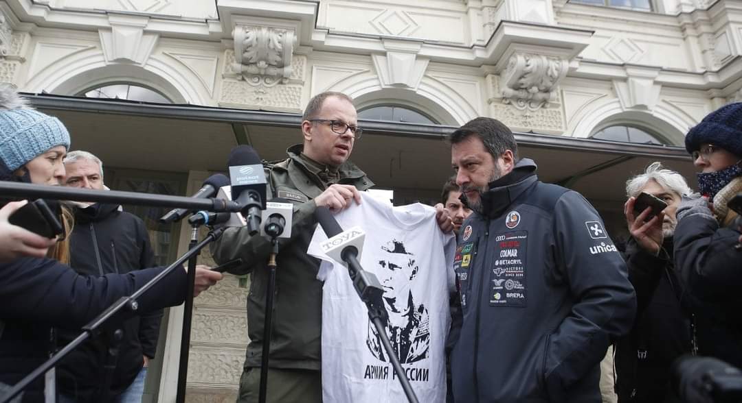 Proprio i rapporti tra Salvini e lo Zar del Cremlino hanno provocato la reazione ieri di Bakun, che con un colpo di scena quasi teatrale ha mostrato davanti alle telecamere, con accanto il segretario del Carroccio, una t-shirt col volto di Putin e la scritta “Esercito russo”, come quella mostrata dallo stesso Salvini in una celebre foto scattata nel 2017 davanti al Cremlino, quando l’ex ministro dell’Interno non nascondeva l’appoggio a Putin.