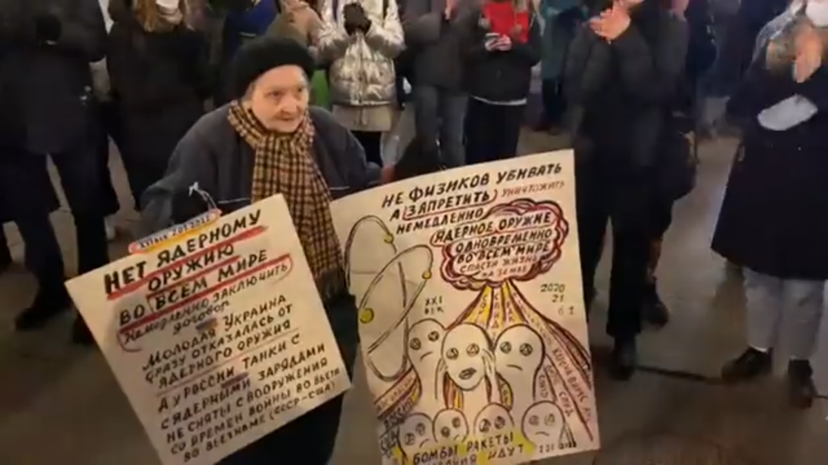 Cappotto grigio, cappello in testa e un grande sciarpone a scacchi. In mano cartelli per la pace. Su uno dei due c’era scritto: “Soldato, lascia cadere la tua arma e sarai un vero eroe!”. Così Yelena Osipova, 80 anni, è scesa in piazza a San Pietroburgo, nella Russia di Putin, per dire basta alla guerra. È subito diventata il simbolo del movimento pacifista: Yelena è stata arrestata dalla polizia russa.