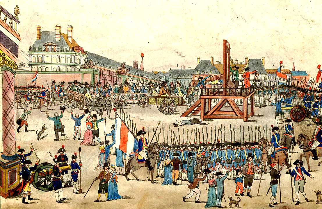 La Convenzione ha quindi inviato i suoi “proconsoli” a stroncare le tentazioni realiste e “i nemici della rivoluzione”. Mentre vengono adottate misure eccezionali e la Francia è in guerra con quasi tutta Europa, mentre massacri e esecuzioni sono all’ordine del giorno, si consuma lo scontro interno. Usi e costumi riflettono il clima. A Parigi si è scatenata una voluttà, un gusto del sangue: le signore inalberano pettinature à la victime e nastri rossi al collo, i bambini giocano con macchine per decapitare, in giro si intonano inni a “Madame la Guillotine”. Robespierre e i suoi premono per la revolution intégrale – la dittatura – lanciandosi alla gola dei loro avversari, siano essi moderati o “arrabbiati”. Il regolamento di conti è allo zenith; i notabili si affrontano simili alle belve nell’arena e, come si dice, “la Rivoluzione divora i suoi figli”. Honoré de Mirabeau è morto, Georges Danton finisce sulla ghigliottina per volere dell’Incorruttibile – «Mostrerai la mia testa al popolo, non capita spesso di vederne del genere», ingiunge al carnefice – Nicolas Condorcet si suicida come molti altri, Marat è stato ucciso da Charlotte Corday, Sono scomparsi Camille Desmoulins (e anche la moglie, l’innocente Lucille, di cui Robespierre era testimone di nozze) Jacques-René Hèbert, Fabre d’Eglantine e altri. Fra i condannati c’è Philippe Ėgalité, il duca d’Orléans che aveva votato la morte del cugino Luigi XVI.