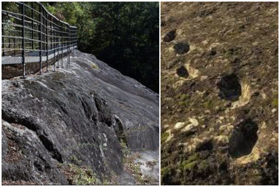 Nei pressi di Roccamonfina, nel piccolo comune di Tora e Piccilli in provincia di Caserta, sono presenti alcune impronte nella roccia che risalgono a circa 350mila anni fa. Secondo la tradizione popolare si tratta di una curiosa leggenda: si crede, infatti, di un posto funesto dove dei demoni camminavano sulla superficie ardente della lava appena eruttata, per dirigersi verso una vicina fonte d’acqua per idratarsi.