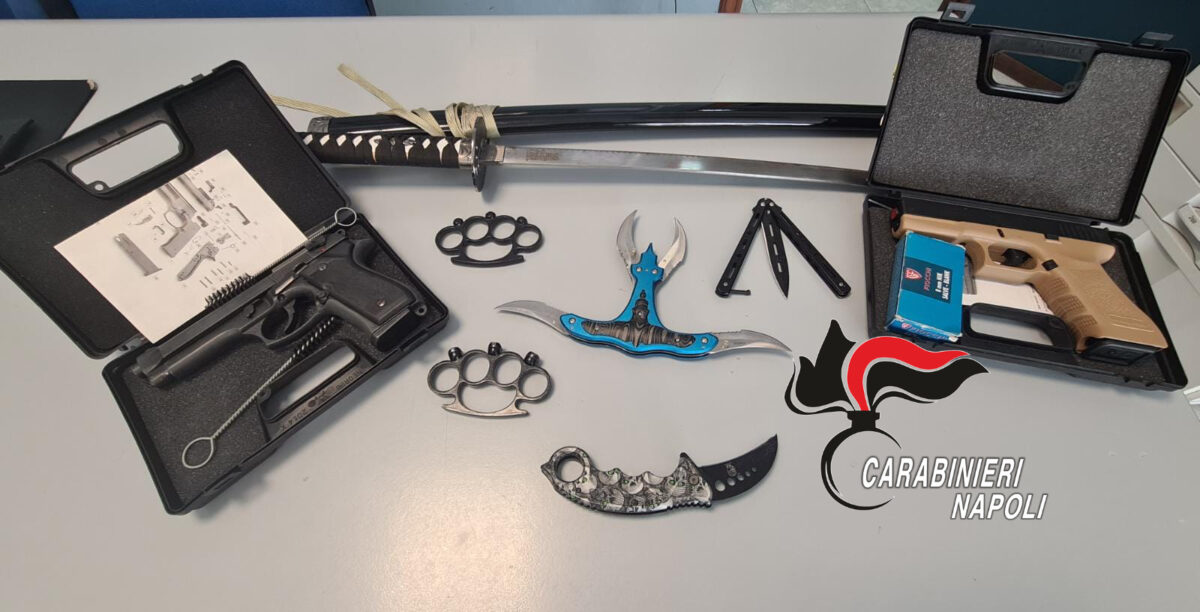 I carabinieri lo hanno raggiunto presso la sua abitazione dove hanno trovato un coltello a serramanico, uno a farfalla e uno multilama. Nel piccolo arsenale ritrovate anche due pistole giocattolo e una katana. Il supporto delle telecamere è stato determinante anche per recuperare due tirapugni che il ragazzo aveva nascosto ai piedi di un albero, nella villa comunale di Casoria.