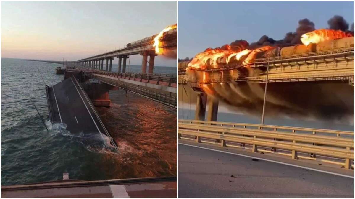 Il ponte di Kerch che collega la Russia alla Crimea è stato colpito da una massiccia esplosione sulla corsia del traffico ferroviario. Alcune immagini dal ponte mostrano un grande incendio in almeno due carrozze di un treno sul ponte e una vasta colonna di fumo nero. Non ci sono vittime ma resta il mistero sulle cause di questa esplosione. Sono passati 227 giorni dall’inizio della guerra in Ucraina, l’attacco al ponte simbolo dell’occupazione russa nella penisola arriva a poche ore dal 70esimo compleanno del presidente Russo.
