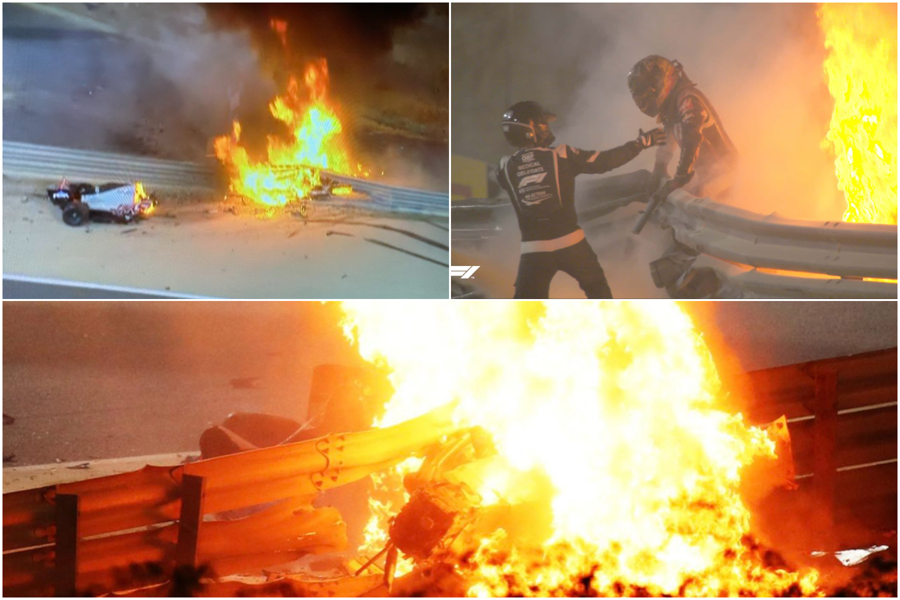 Incidente spaventoso nel corso del primo giro del gran premio del Bahrain di Formula Uno. Subito dopo il semaforo verde, la Hass guidata dal pilota francese Romain Grosjen va in testa coda e sbatte contro le protezioni andando subito in fiamme e spezzandosi in due.