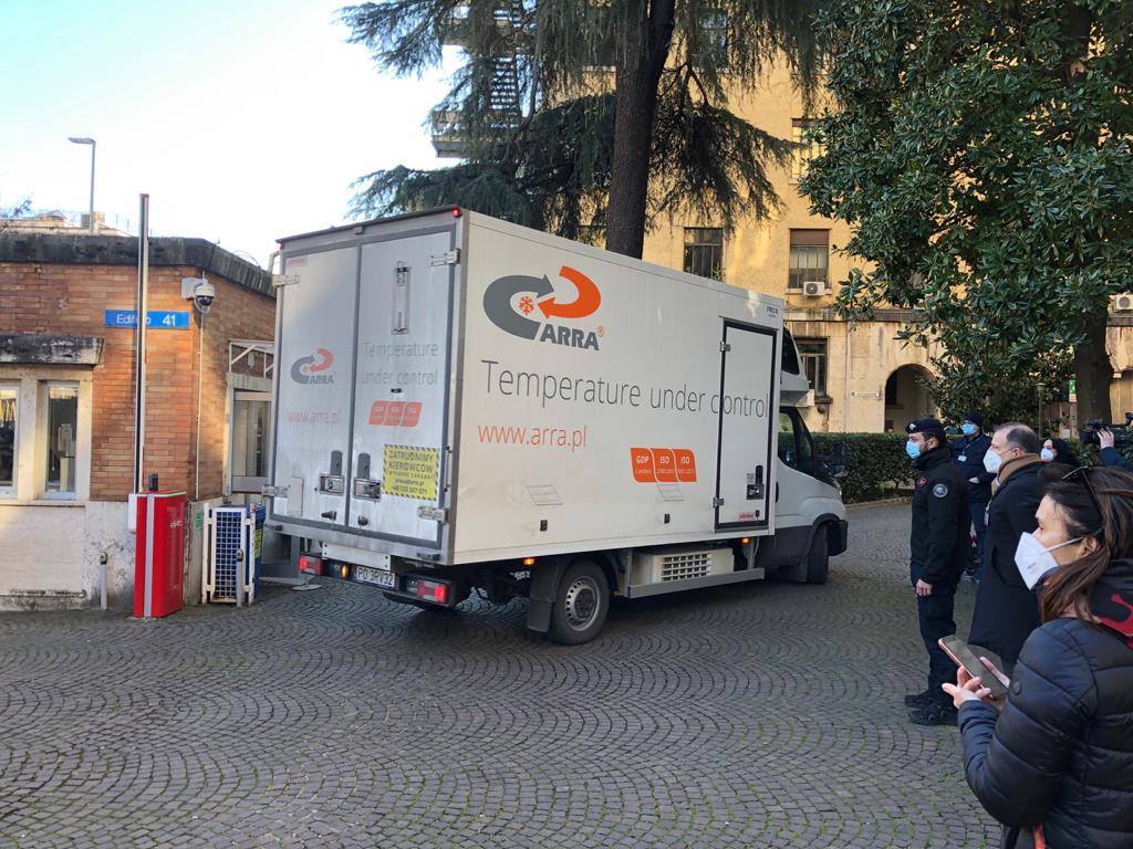 Sono arrivati questa mattina in Italia, per lo stoccaggio presso l’Istituto superiore di Sanità (Iss), le prime 47mila dosi di vaccino anti-Covid prodotto dall’azienda farmaceutica americana Moderna. Poco dopo le 2 di notte il furgone ha attraversato il Brennero e intorno a mezzogiorno è arrivato all’Istituto con sede nella Capitale, mentre nei prossimi giorni inizierà la distribuzione nelle regioni.