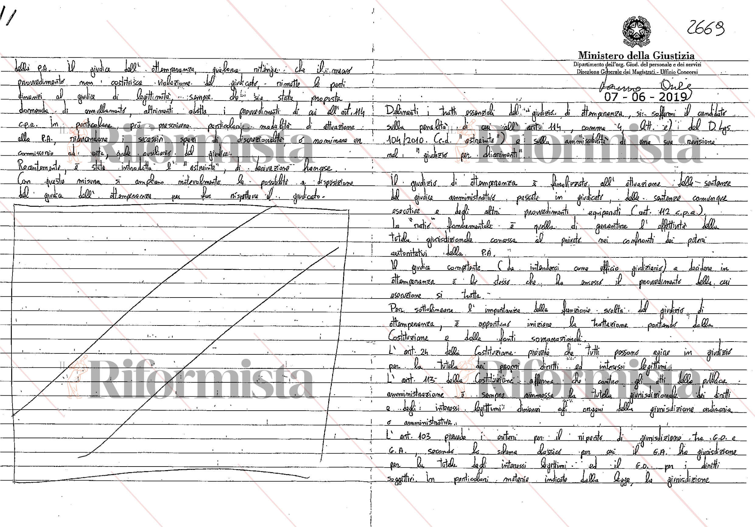 Venivano acquisiti anche i verbali delle attività svolte dalla Commissione. Si appurava che le correzioni non erano state effettuate, come previsto, in stretto ordine cronologico. In particolare, alcuni compiti erano stati corretti solo successivamente e senza l’indicazione delle tempistiche. L’onorevole Pierantonio Zanettin (FI) aveva al riguardo chiesto chiarimenti al ministro della Giustizia, a cui la legge affida “l’alta vigilanza” sul concorso in magistratura. Con una risposta sorprendente, Bonafede la scorsa settimana aveva affermato di non potere entrare “nel merito delle decisioni” della Commissione, invitando i bocciati a presentare ricorso, come qualcuno aveva già fatto, al Tar.