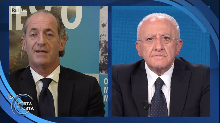 Davanti alle telecamere ci sono un esponente della Lega e uno del Partito democratico. Ora, se si analizza la composizione dell’attuale maggioranza parlamentare, a scagliarsi contro il governo dovrebbe essere il primo, visto che il partito di Salvini è all’opposizione. Invece no. A puntare il dito contro l’esecutivo è un democrat, alfiere di una delle forze politiche che tengono in piedi il premier Giuseppe Conte. L’ennesimo cortocircuito della politica? Probabilmente sì, ma anche uno dei paradossi ai quali Vincenzo De Luca ci ha abituato. Già, perché l’alfiere del Pd che contesta il governo di cui il suo partito fa parte è proprio lui, il rieletto governatore della Campania. Mentre il leghista che sostiene il proprio modello amministrativo senza fare la voce grossa con Roma è Luca Zaia, recentemente confermato alla guida del Veneto. Il confronto è andato in onda su Rai Uno, nel salotto di Porta a Porta, e ha offerto diversi spunti di riflessione.