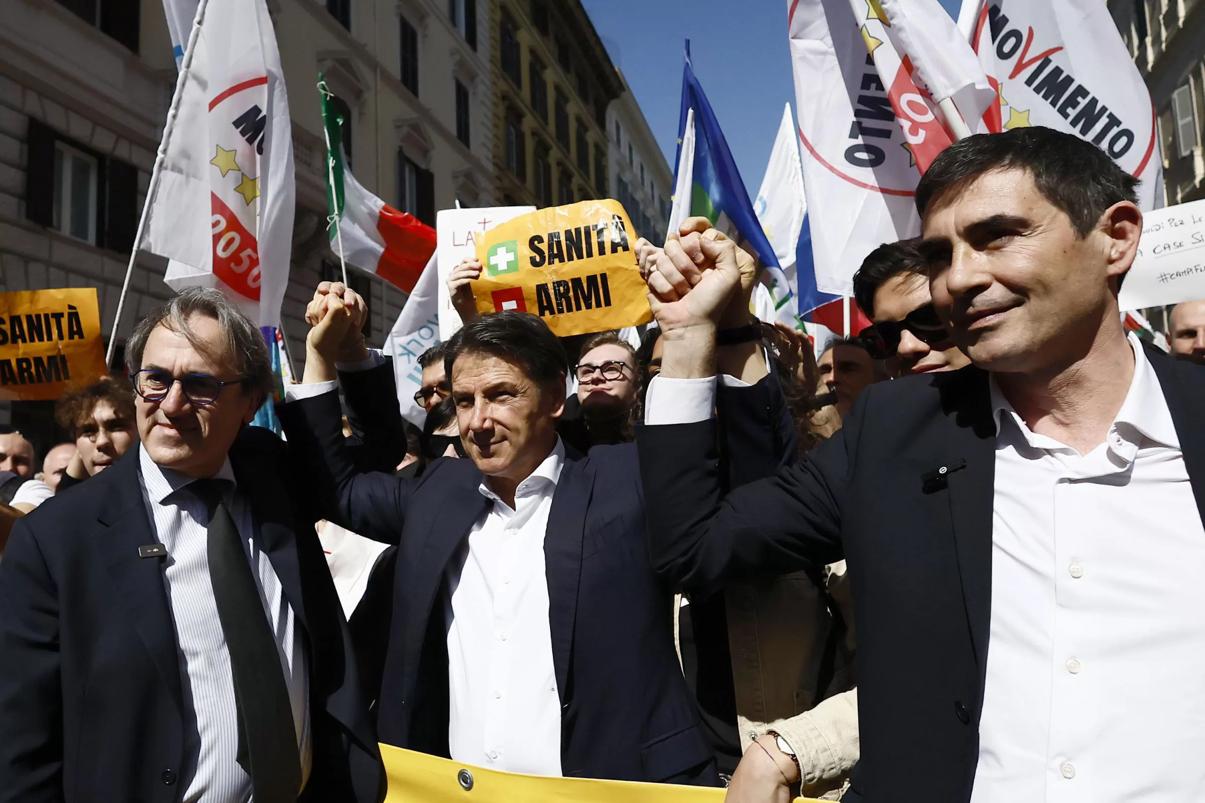 Alla carnevalesca marcia si pongono alla testa due forze della maggioranza giallorossa che ha guidato Palazzo Chigi per diciassette mesi. Durante i quali Conte e i suoi ministri – che ancora non sapevano di doversi preparare per le marce pacifiste – hanno preso parte al vertice Nato di Londra (3-4 dicembre 2019) che ha deliberato l’aumento più importante delle spese militari, poi al vertice (da remoto) del 2020 con la stessa agenda, infine ai lavori preparatori di un terzo vertice Nato che si è tenuto a Bruxelles nel 2021. durante il Governo Conte II, in particolare al vertice di Londra 2019. Eccoli domani in piazza, il Movimento 5 Stelle e l’Alleanza Verdi e Sinistra, rappresentata da Angelo Bonelli e Nicola Fratoianni. Non ci sarà invece una delegazione ufficiale del Partito Democratico. Dopo giorni di aspro confronto interno, la segretaria Elly Schlein ha scelto di non aderire formalmente all’iniziativa, anche se alcuni esponenti del partito – come Arturo Scotto e Marco Tarquinio – parteciperanno a titolo personale.