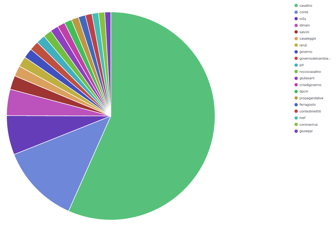 Tra gli argomenti di interesse notiamo che #casalino è quello preferito dal pubblico ed il che vuol dire che più volte è stato oggetto di discussione social. Inevitabile la vicinanza di Conte, Movimento cinque stelle e Di Maio. Andando più in fondo però notiamo le macchie della carriera di Casalino. La prima è quella di giuliasarti, alla quale Casalino consiglio di denunciare il suo ex per una questione inerente lo “spionaggio” a basse di sesso con tanto di videoriprese, che poi si è rivelata una azione destituita di ogni fondamento. Segue la questione dei dcpm dove Casalino più volte compariva nella diretta nazionale del Premier, facendo stizzire addetti ai lavori e non. L’hashtag #ferragosto è invece riferito ai fatti di Genova, gravissimi, che ne hanno chiesto piu volte le dimissioni mentre più volte il suo nome è stato associato alla richiesta di dimissioni del Premier.