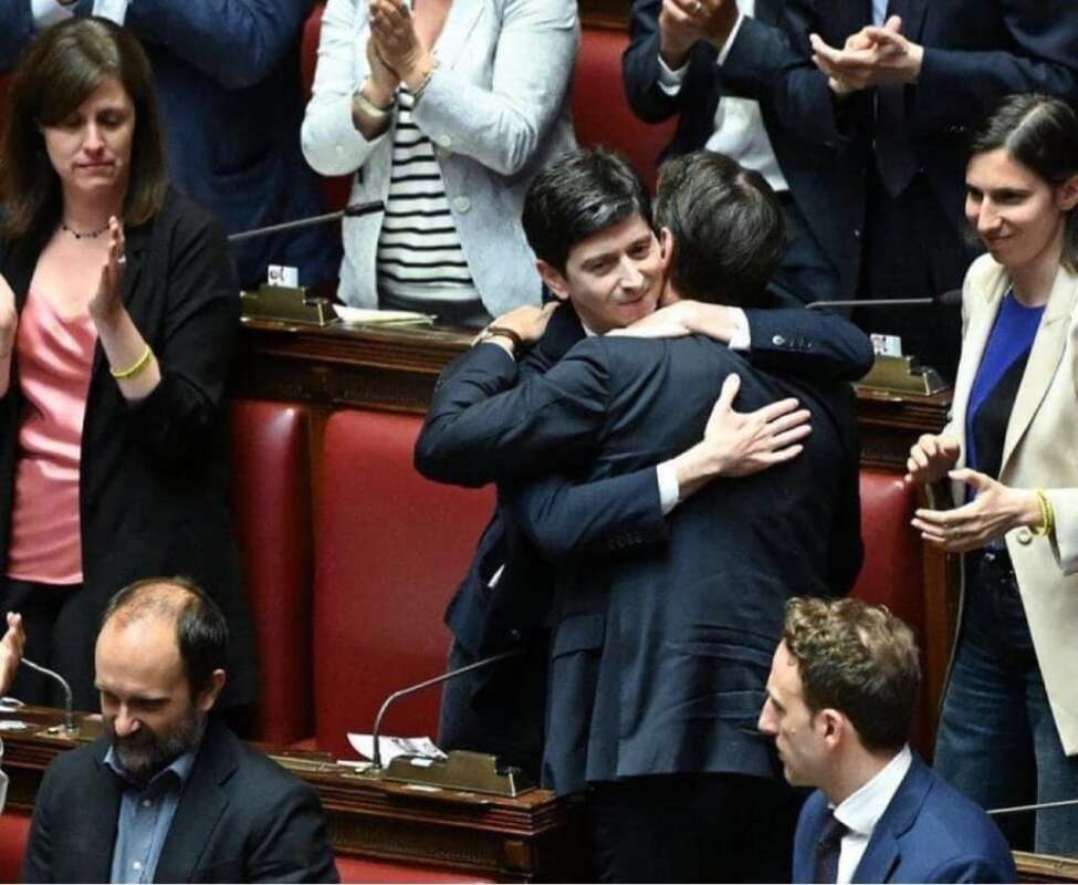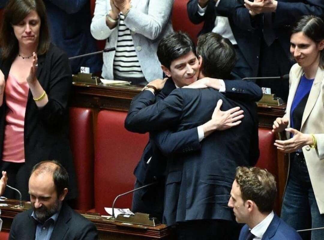 E no, anche l’abbraccio no, passi che siete a Montecitorio e non a Palazzo Chigi, davanti ad una piazza deserta, in una città spettrale, in un Paese altrettanto spettrale. Quell’abbraccio tra Giuseppe Conte e Roberto Speranza, tra il Presidente del Consiglio ed il suo ministro della salute, ci riporta a quei tempi cupi. A quelle notti passate in pena, con la conferenza stampa del capo del governo, che veniva rinviata ogni mezz’ora, e tutte le volte finiva che Conte e Casalino, comparivano non prima di mezzanotte, tra le madonne dei giornalisti ed i collassi emotivi di noi che aspettavamo sul divano di casa, anche sia detto, perché non avevamo altro da fare.