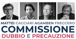 Dallo stesso periodo storico prende spunto l’intervento del professore e filosofo Giorgio Agamben che paragona l’attuale governo ai dittatori Hitler o Stalin: “Davanti a noi non abbiamo avversari intellettualmente vivi. Sono dei morti. Una delle nostre difficoltà è quella di dover affrontare avversari spiritualmente inesistenti. Per questo servono azioni concrete. Durante il fascismo, chi si opponeva non organizzava solo convegni, ma passava all’azione” prosegue poi parlando dei “metodi infami, estremi e distruttivi, contro i quali non ha senso limitarsi a invocare i propri diritti”.