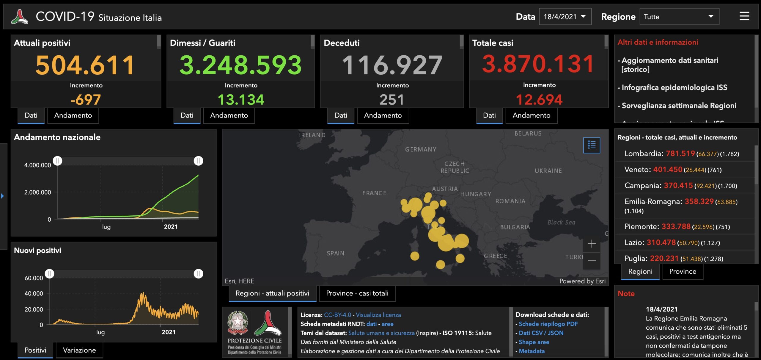 Le regioni con il maggior numero di nuovi casi sono Lombardia (1.782, ieri 2.546), Campania con 1.700 (ieri 2.232), Puglia con 1.278 (ieri 1.525), Lazio con 1.127 (ieri 1.378) ed Emilia Romagna con 1.104 (ieri 1.301).