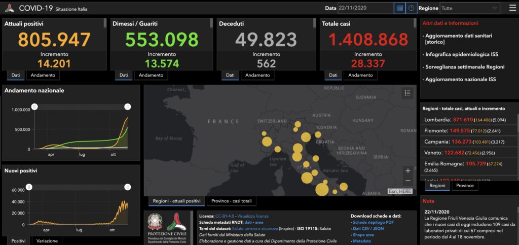 Nelle ultime 24 ore sono 13.574 le persone guarite o dimesse, col totale che arriva a 553.098, mentre gli attualmente positivi in Italia sono 805.947 (+14.201). Di questi 3.801 sono ricoverati in terapia intensiva, 43 in più rispetto a ieri. Ammontano a 34.279 i ricoveri ordinari, 216 in più nelle ultime 24 ore.