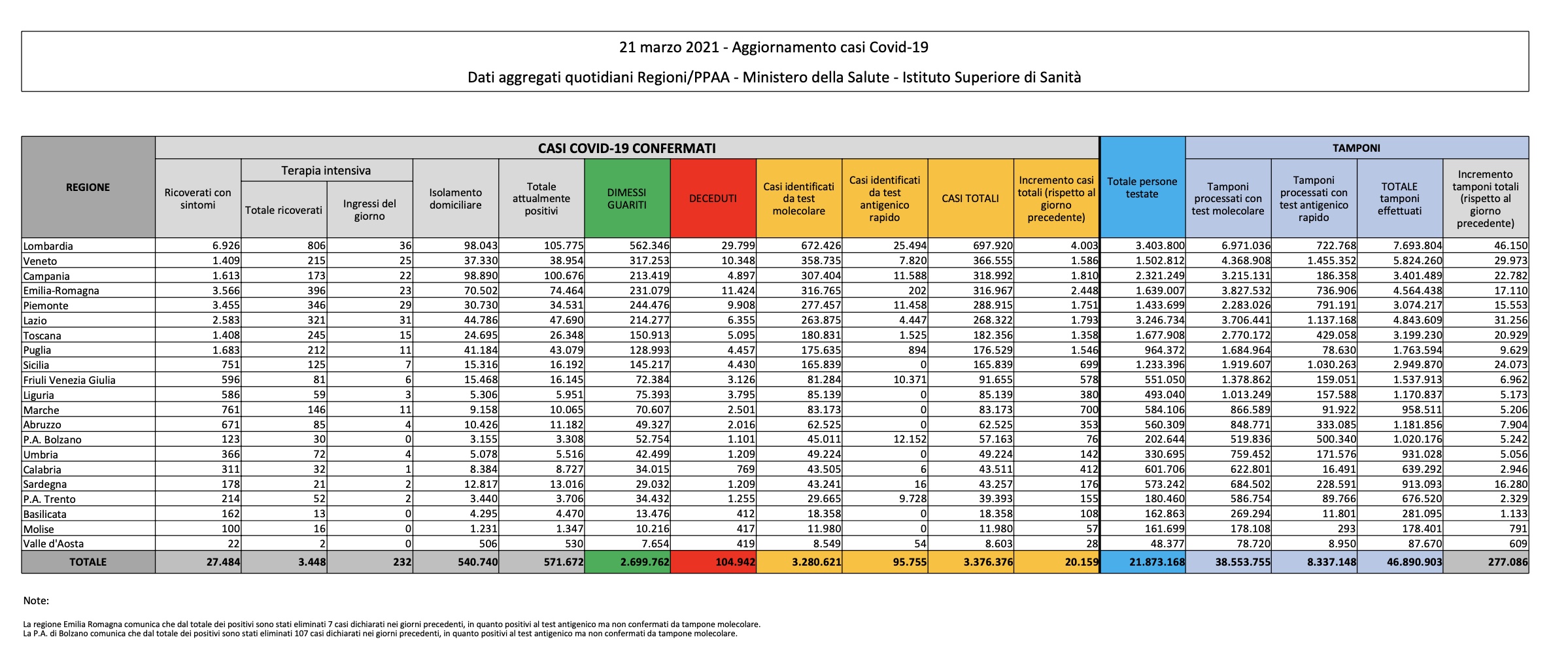 La Regione con piu’ positivi nelle ultime 24 ore e’ ancora la Lombardia con un aumento di 4.003 casi, l’Emilia Romagna (+2.448), la Campania (+1.810), il Lazio +(1.793), il Piemonte (+1.751).
