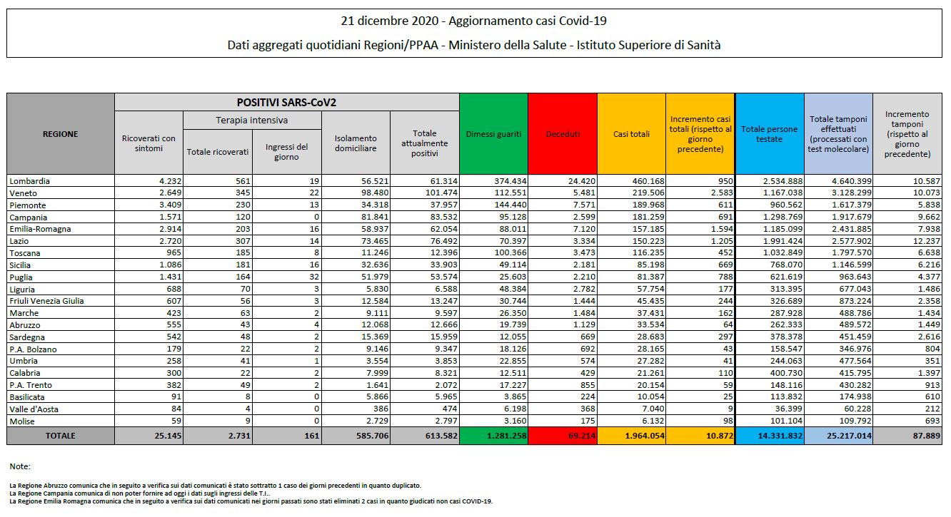 Quanto al dato dalle regioni, il Veneto fa segnare 2.583 nuovi casi, seguito da Emilia Romagna (1.594), Lazio (1.205), Lombardia (950), Puglia (788), Campania (698), Sicilia (669), Piemonte (611).