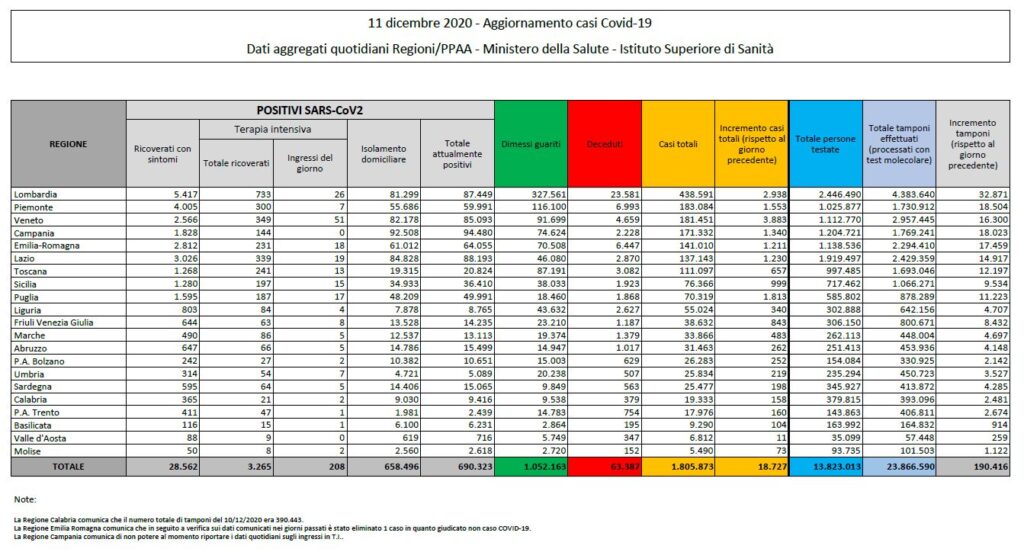 Quanto al dato regionale, il Veneto fa registrare il maggior incremento di casi con 3.883 nuovi positivi, seguito da Lombardia (2.938), Puglia (1.813), Piemonte (1.553), Campania (1.340), Lazio (1.230), Emilia Romagna (1.211).