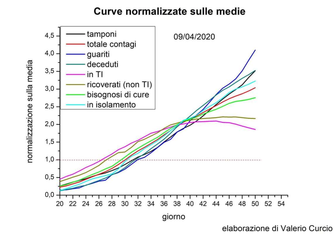 Proprio le curve normalizzate mostrano il violento cambio di pendenza dei tamponi, che si ripercuote sul cambio di pendenza anche nella curva cumulativa dei contagi.
