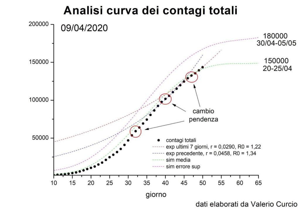 Sto completando la costruzione dell’equazione differenziale dei contagi, che funziona dal punto di vista numerico ma deve essere meglio inquadrata da quello teorico (ho già qualche idea). Adesso vi lascio ai grafici”.