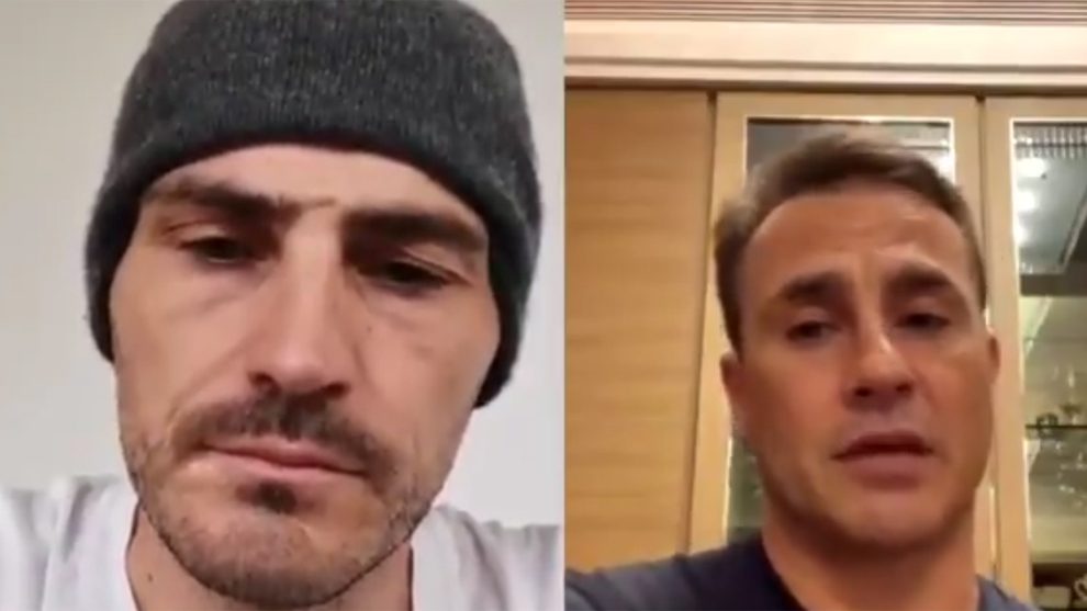 “Dobbiamo restare a casa, dobbiamo essere uniti in questo momento”. È come se stessero parlando alle loro squadre. Due capitani, due campioni del mondo, si chiamano e condividono la loro conversazione con i loro tifosi. E lo fano soprattutto per lanciare un messaggio: combattiamo insieme il coronavirus. Fabio Cannavaro e Iker Casillas. Il primo, napoletano, capitano e Campione del Mondo con l’Italia nel 2006 e Pallone d’Oro nello stesso anno. Il secondo, spagnolo, la Coppa del Mondo l’ha alzata nel 2006. I due hanno giocato insieme dal 2006 al 2009 nel Real Madrid, squadra della quale Casillas è diventato una bandiera. “Hai avuto la fortuna di giocare con me e capire come si vince un mondiale”, ha scherzato il difensore napoletano. Ma il calcio non ha trovato molto spazio nella conversazione.