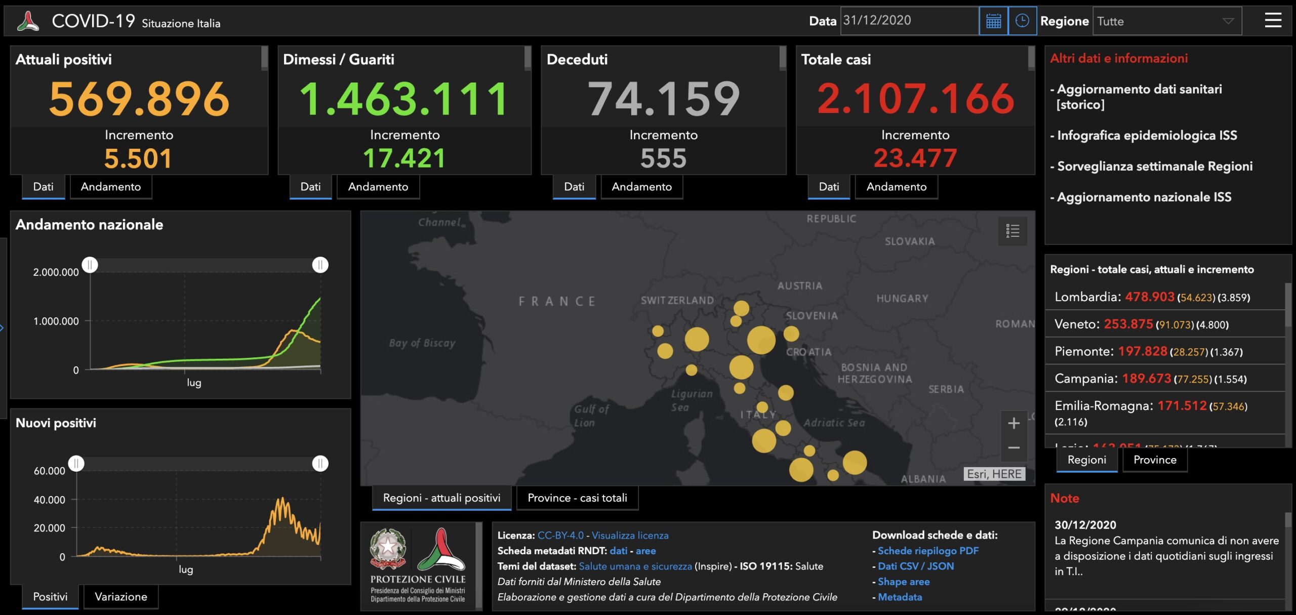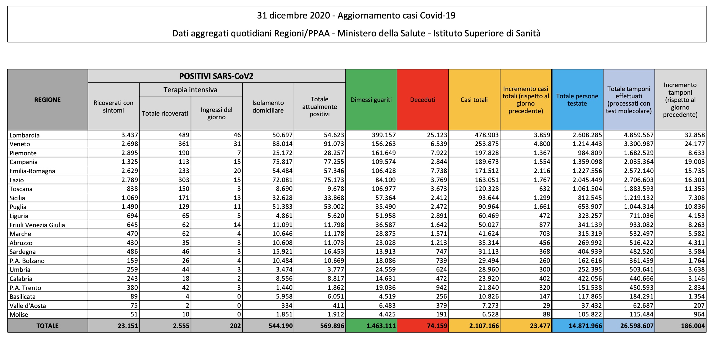 Il numero di casi totali (compresi guariti e morti) sale dunque a quota 2.107.166, mentre le vittime del virus sono ormai 74.159 vittime da febbraio, quando è iniziato il monitoraggio.