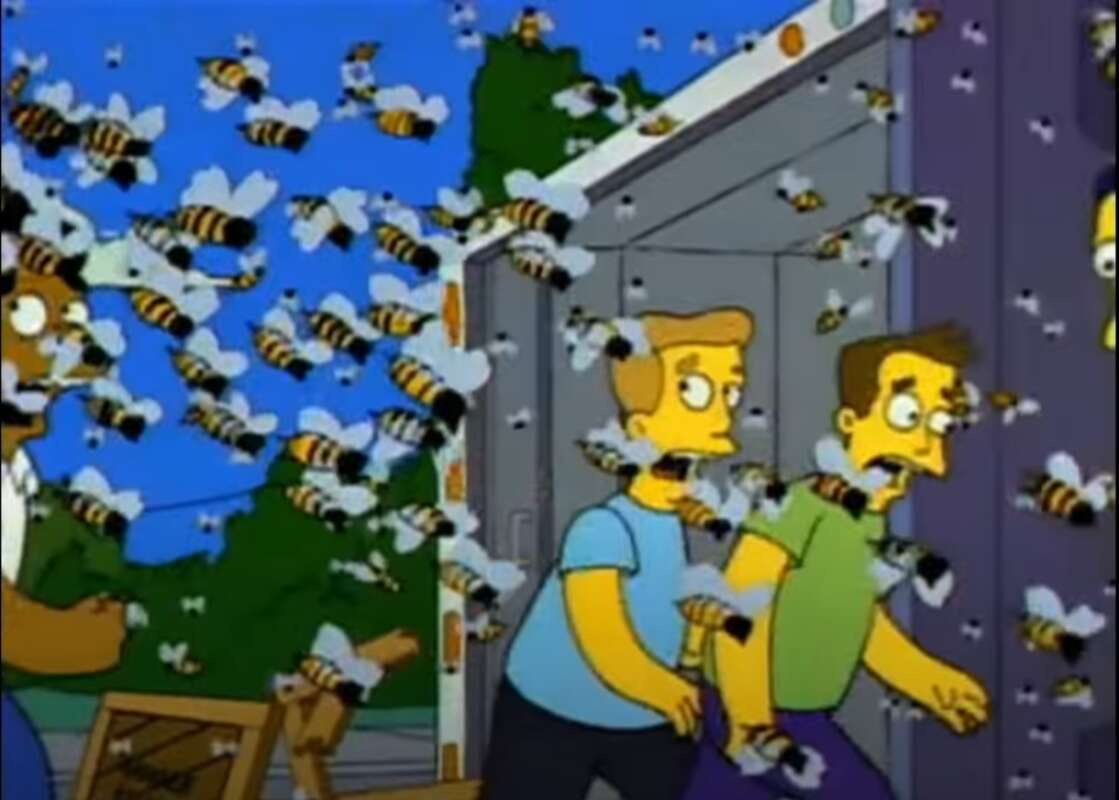 Nella scena, segnalata via twitter da @didgeridougrou, si vedono i cittadini di Springfield chiedere a gran voce sotto il balcone del dottor Hibbert una cura per una malattia. Ma il dottore gli annuncia che una cura non c’è: il riposo a letto è tutto ciò che può prescrivere, qualsiasi altro farmaco sarebbe un placebo. Subito dopo i cittadini prendono d’assalto un camion dal quale fuoriescono migliaia di grossi insetti, che ricordano il calabrone asiatico gigante che proprio in questi giorni sta preoccupando gli Stati Uniti.