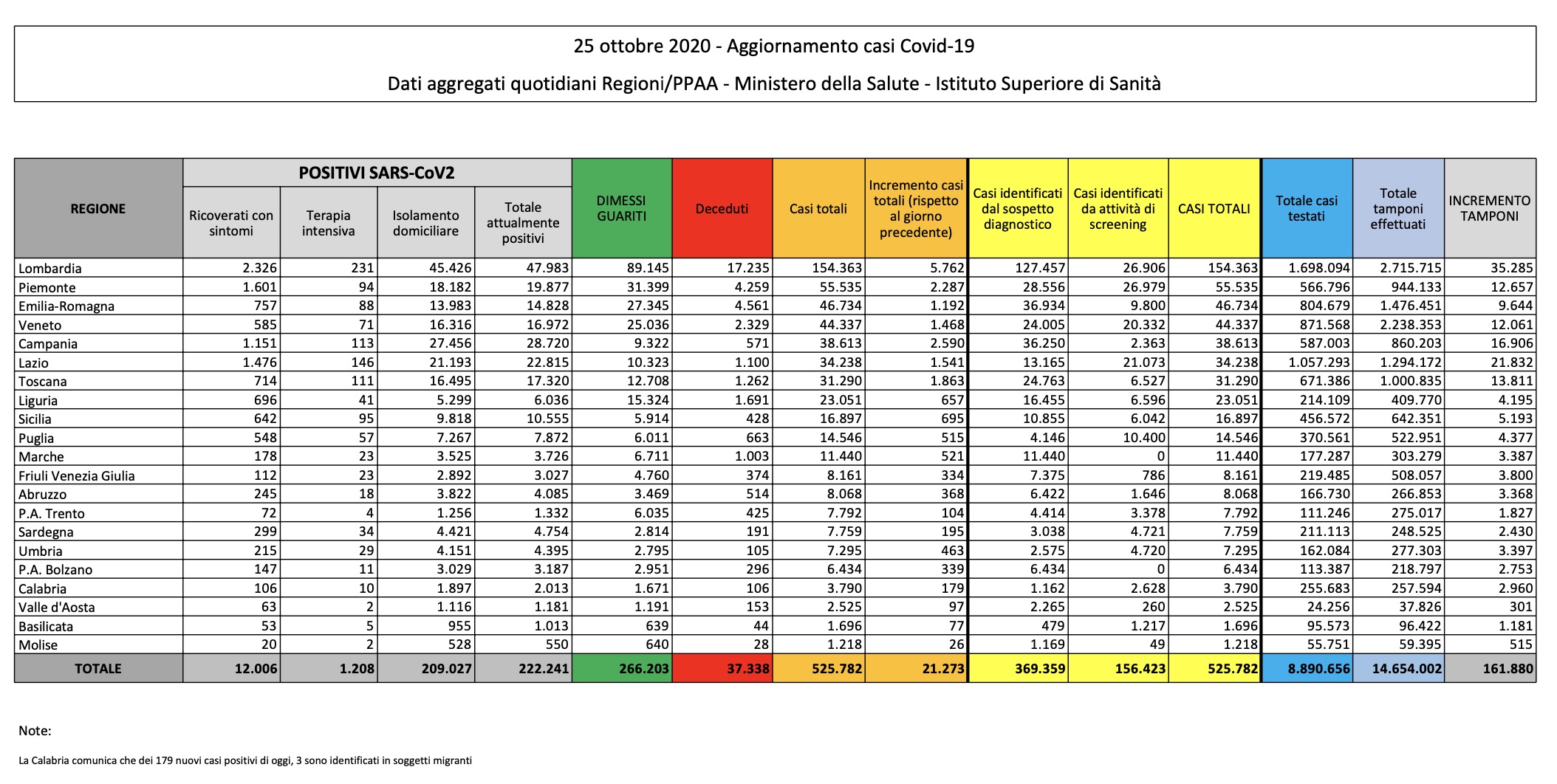 Le persone attualmente positivi sono 222.241 in Italia: di questi i ricoverati con sintomi sono 12.006 (+719), mentre in terapia intensiva vi sono 1.208 persone (+80).