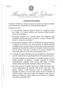 Per quanto concerne il trasporto ferroviario, la Polizia ferroviaria curerà, con la collaborazione del personale delle ferrovie dello Stato, delle autorità sanitarie e della Protezione civile, la canalizzazione dei passeggeri in entrata e in uscita dalle stazioni al fine di consentire le verifiche speditive sullo stato di salute dei viaggiatori anche attraverso apparecchi ‘termoscan’. Inoltre saranno attuati controlli sui viaggiatori acquisendo le autodichiarazioni.