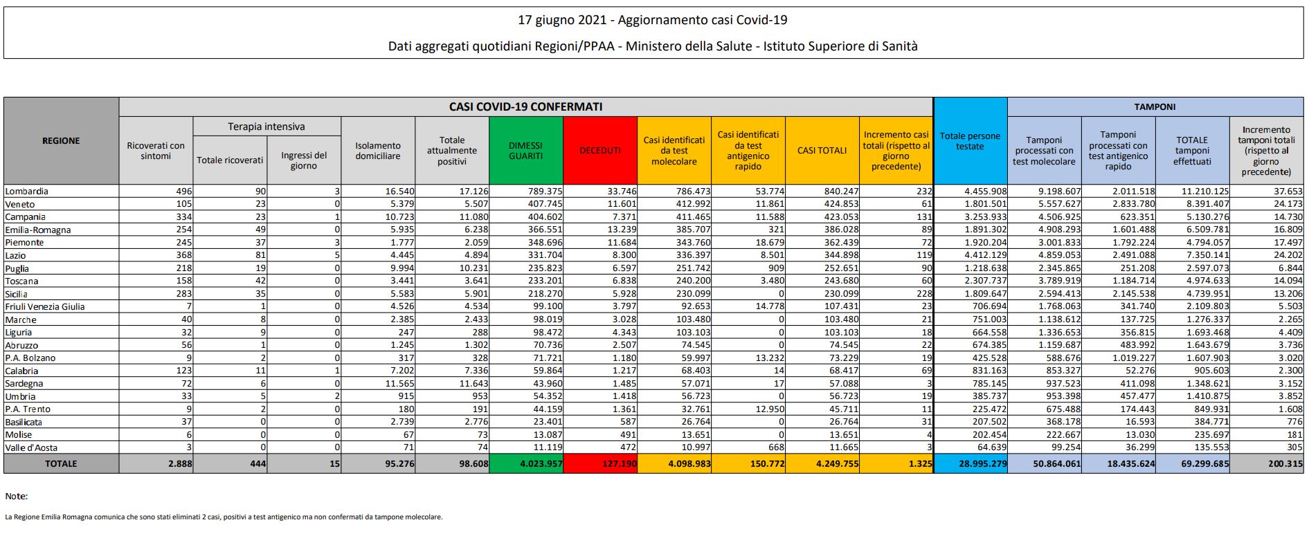 La regione con più casi odierni è la Lombardia, 232. Seguono Sicilia, 228, Campania, 131, Lazio, 119, e Puglia, 90. Continua intanto la campagna vaccinale con oltre 44 milioni e 22mila somministrazioni, per un totale di oltre 14 milioni e 810mila persone che hanno completato il ciclo, il 27,31% della popolazione over 12.