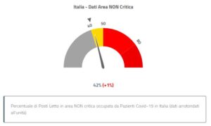 RICOVERI SOPRA LA SOGLIA DI ALLERTA DEL 40% – Torna sopra il 40%, soglia d’allerta, anche la percentuale dei pazienti Covid ricoverati nei reparti degli ospedali italiani. I pazienti positivi, scrive nel suo report l’Agenas, sono il 42% di quelli ricoverati in Medicina interna, Infettivologia e Pneumologia. Quelli ricoverati nei reparti di terapia intensiva sono da due settimane il 38%, be oltre il livello d’allerta fissato al 30 per cento.