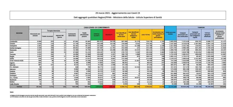 Per quello che riguarda la campagna vaccinale, al momento sono 9.499.293 le somministrazioni condotte in Italia su un totale di 11.247.180 dosi consegnate, 2.996.933 le persone che hanno ricevuto sia la prima che la seconda dose.