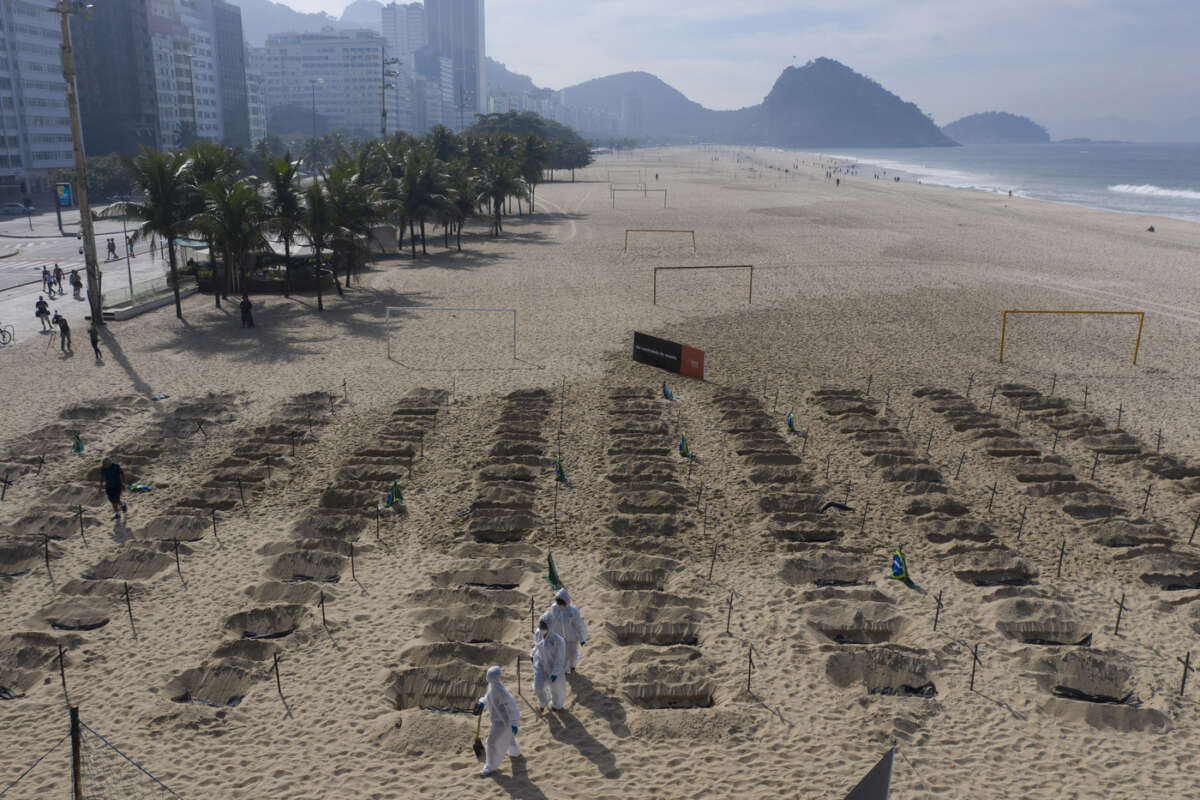 Proprio per protestare contro il governo, l’Ong brasiliana Rio de paz ha messo in atto una singolare protesta. Una 40ina di volontari hanno scavato 100 fosse sulla celebre spiaggia di Copacabana, davanti all’hotel Copacabana Palace per simboleggiare la morte del Brasile. Le tombe sono evidentemente un rimando ai cimiteri piani e alle fosse comuni scavate ad esempio a Manaus. “Chiediamo al governo un cronoprogramma, vogliamo sapere cosa succederà da qui a uno o due mesi, dove sta andando il Brasile – ha dichiarato Antonio Carlos Costa, presidente della Ong – Non c’è un obiettivo, non c’è programmazione. Non c’è stata una sola espressione di compassione da parte del presidente della Repubblica, un po’ di solidarietà per coloro che soffrono”.