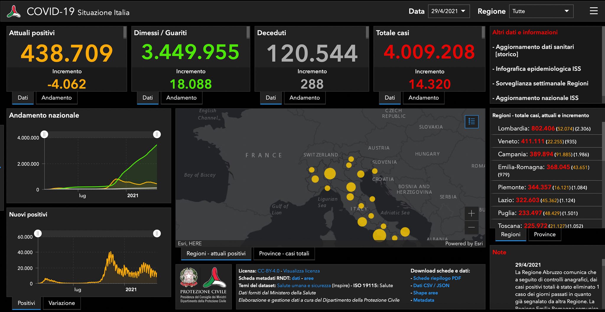 Superati i quattro milioni di casi (4.009.208) nel bollettino di giovedì 29 aprile. Sono 14.320 i positivi emersi nelle ultime 24 ore dall’analisi 330.075, circa 6mila in meno del giorno precedente (336.336) quando i contagi sono stati 13.385. I morti sono 288 (ieri 344), per un totale da inizio pandemia di 120.544. Con questi dati il tasso di positività sale al 4,3% (ieri era al 4%).