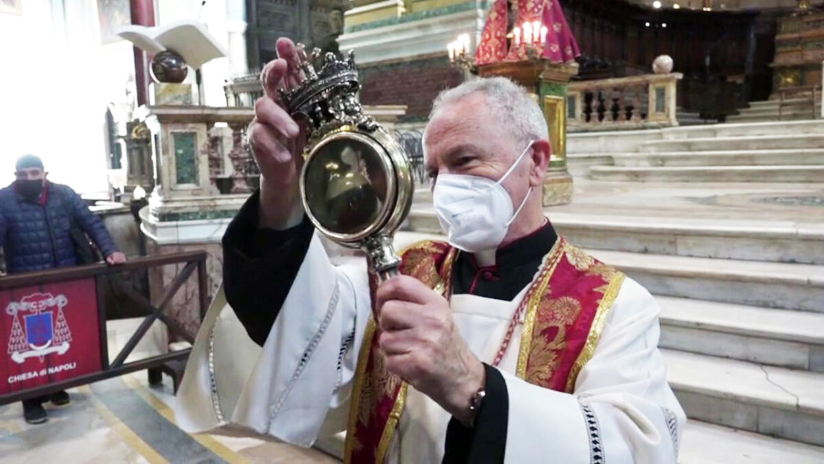 Eccezionalmente celebrato sull’altare maggiore della Cattedrale napoletana, e non come di consueto nella Cappella del santo, a causa delle norme antiCovid, il consueto sventolio del fazzoletto bianco quest’anno è stato affidato al deputato Pierluigi Sanfelice di Bagnoli, che fa parte di una delle più antiche famiglie del patriziato napoletano e componente della Deputazione della Cappella di San Gennaro. Dopo il miracolo, le ampolle del sangue del santo Patrono di Napoli sono state riposte nella cassaforte d’argento della Cappella. Le celebrazioni del miracolo d’inverno ricordano lo scampato pericolo della città di Napoli dall’eruzione del Vesuvio del 16 dicembre 1631, quando l’esposizione in processione del sangue e del busto del santo protettore al Ponte dei Granili, fermò il magma che minacciava di distruggere la città.