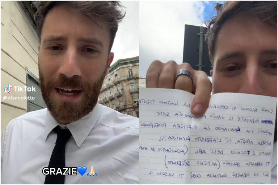 “Ciao Nicolò ti osservavamo da lontano mentre giravate il video al tassista, siete andati via lasciando al portiera aperta. Te l’abbiamo richiusa. Sei un grande, continua così”. E’ questo quello che c’era scritto su un biglietto a penna blu che Nicolò De Devitiis ha trovato sulla sua auto che aveva parcheggiato una delle vie di Napoli. Dentro c’erano molti oggetti di valore ma i due angeli custodi del biglietto hanno controllato l’auto mentre la “Iena” De Devitiis era lontana per inseguire una persona da intervistare per un servizio. De Devitiis grato e felice ha raccontato su TikTok l’accaduto.