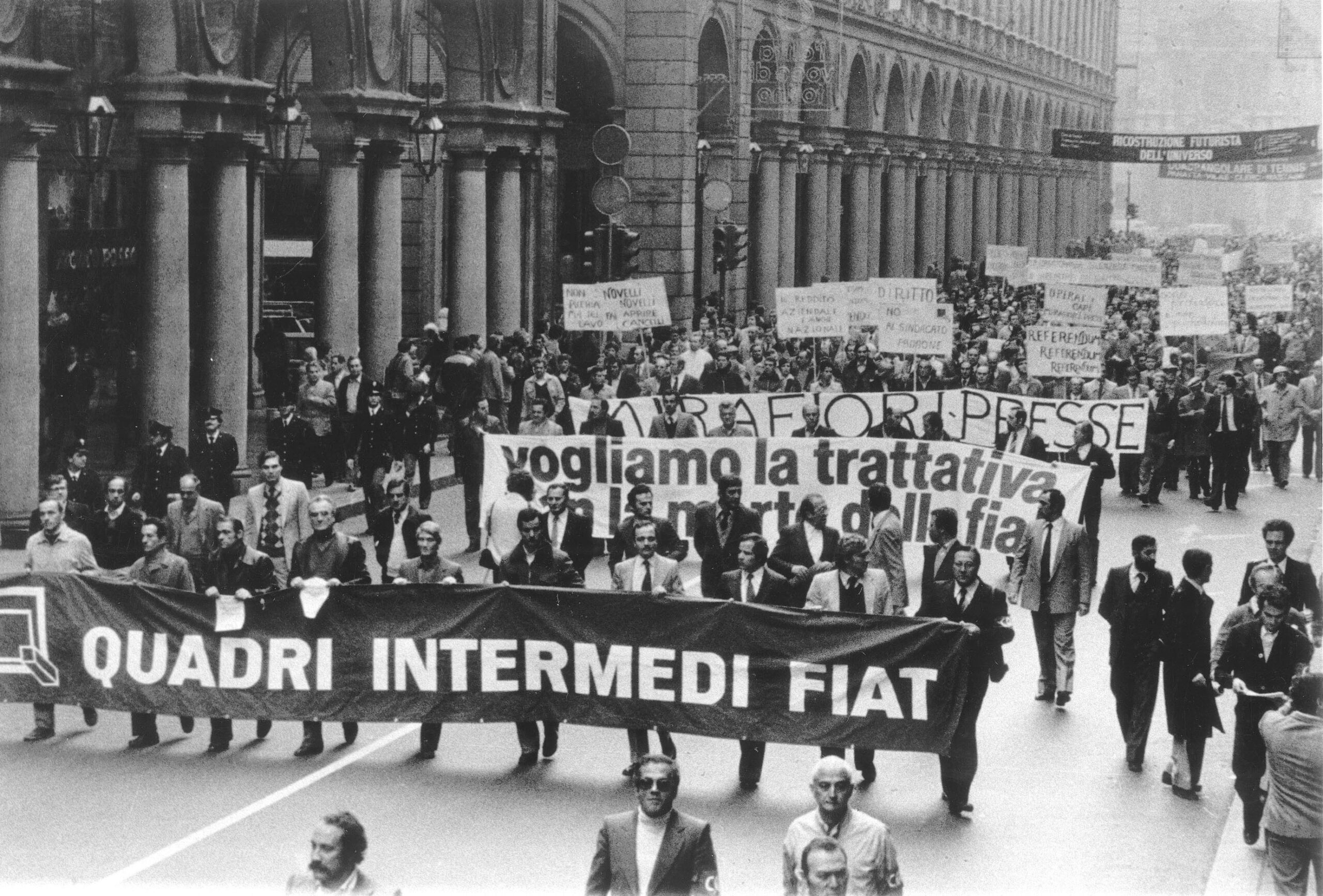 14 ottobre: marcia dei quarantamila: quadri, impiegati della Fiat, ma anche di operai e comuni cittadini che, inaspettatamente ed in contrapposizione ai sindacati, manifestano per il ritorno alla normalità della città, scossa dalle proteste per la messa in Cassa integrazione guadagni di ben 24.669 operai